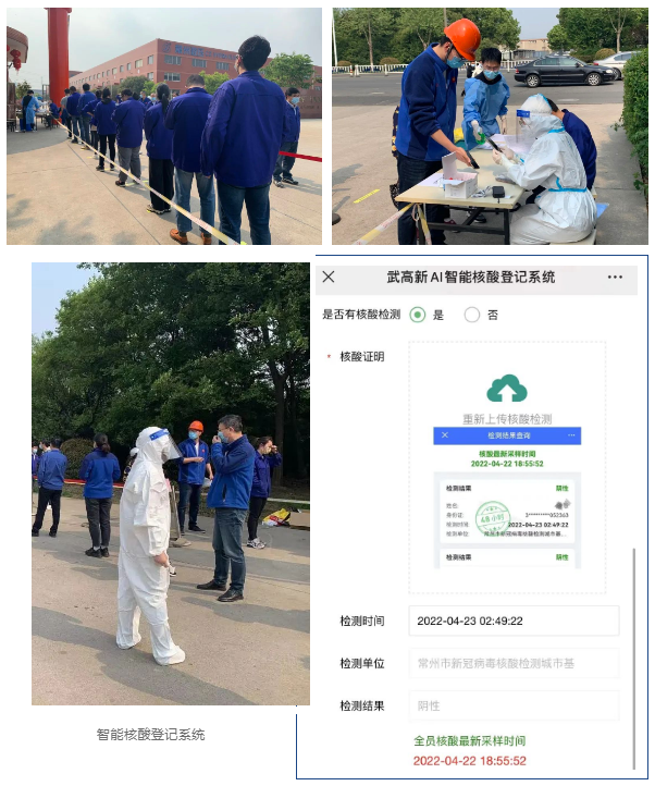 根據上級文件精神指示,配合開展全體員工及鄰廠單位全員核酸檢測,為安全生產築牢“防護牆”。同時要求員工在武高新AI智能核酸係統中及時上傳最新核酸證明。