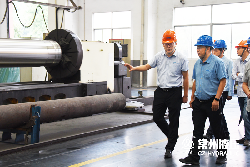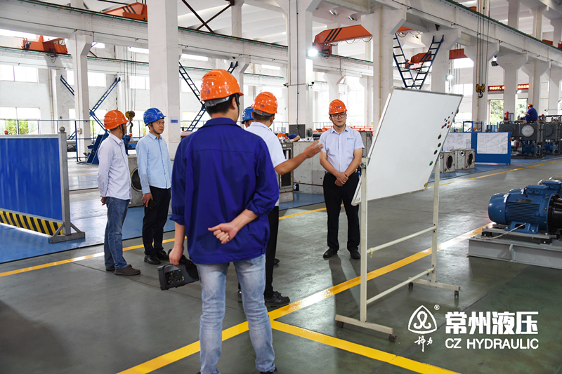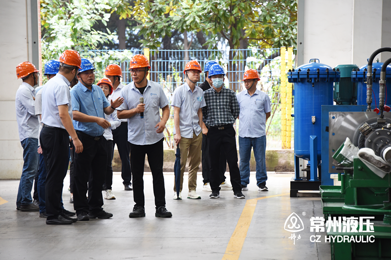 隨後,由常州液壓總經理蔡劍峰先生全程陪同與會領導進行現場調研,分別由常州液壓生產部徐部長、裝配車間賈主任及熱噴塗生產線負責人對各技術加工車間的工藝、產品、生產管理規範、生產裝配流程等內容進行介紹。