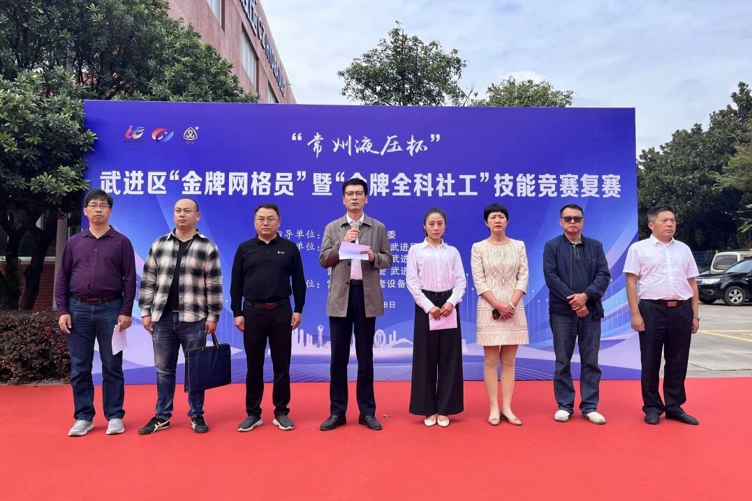 10月8日下午,武進區“金牌網格員”暨“金牌全科社工”技能競賽複賽在常州液壓成套設備廠有限公司順利舉行。來自武進湟裏、湖塘、南夏墅等鄉鎮的11支隊伍共33名專職網格員參賽,區委政法委副書記巢鷹參加活動並作動員講話,大賽對網格員安全隱患排查能力進行了全方位檢驗。