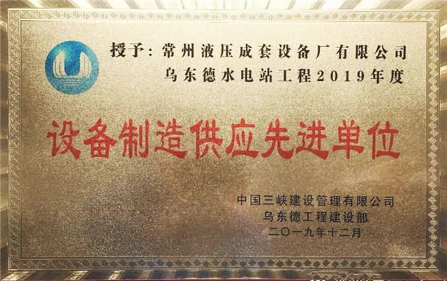 熱烈祝賀我公司在烏東德水電站工程中被授予“設備製造供應先進單位”的光榮稱號